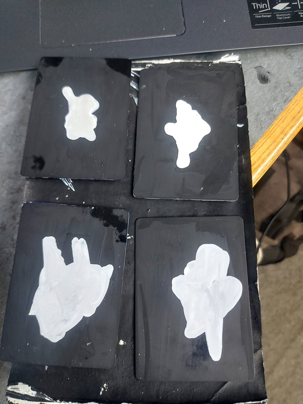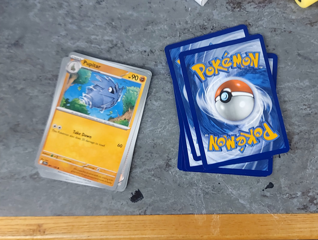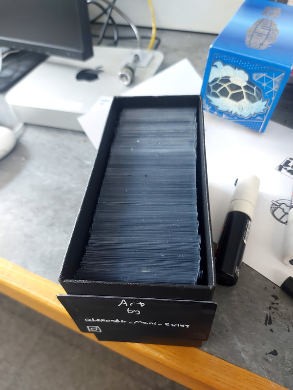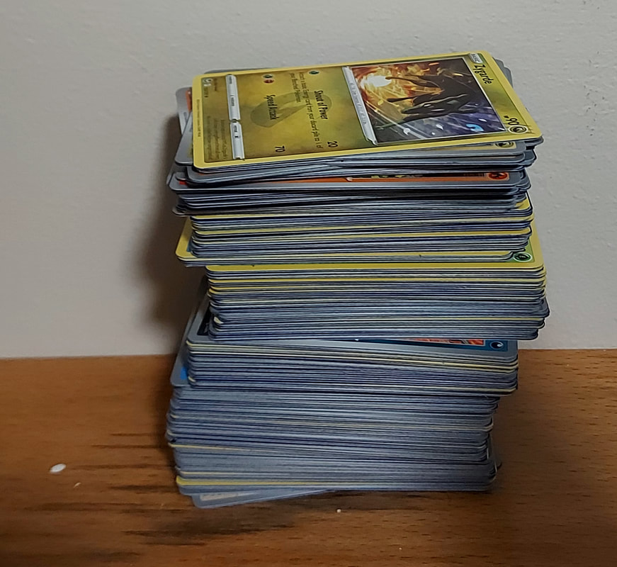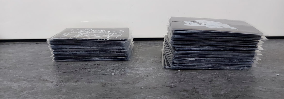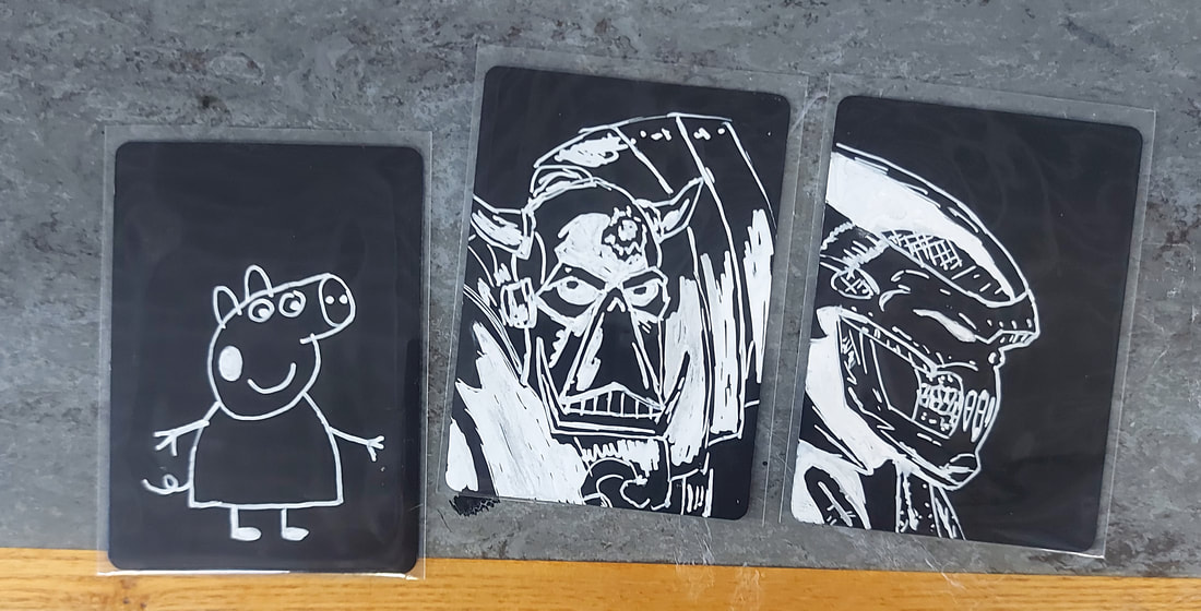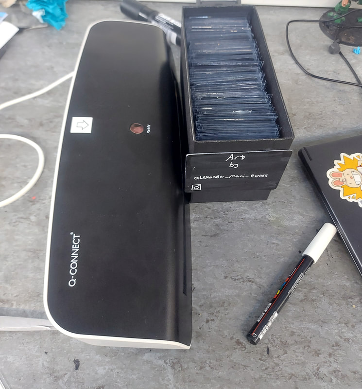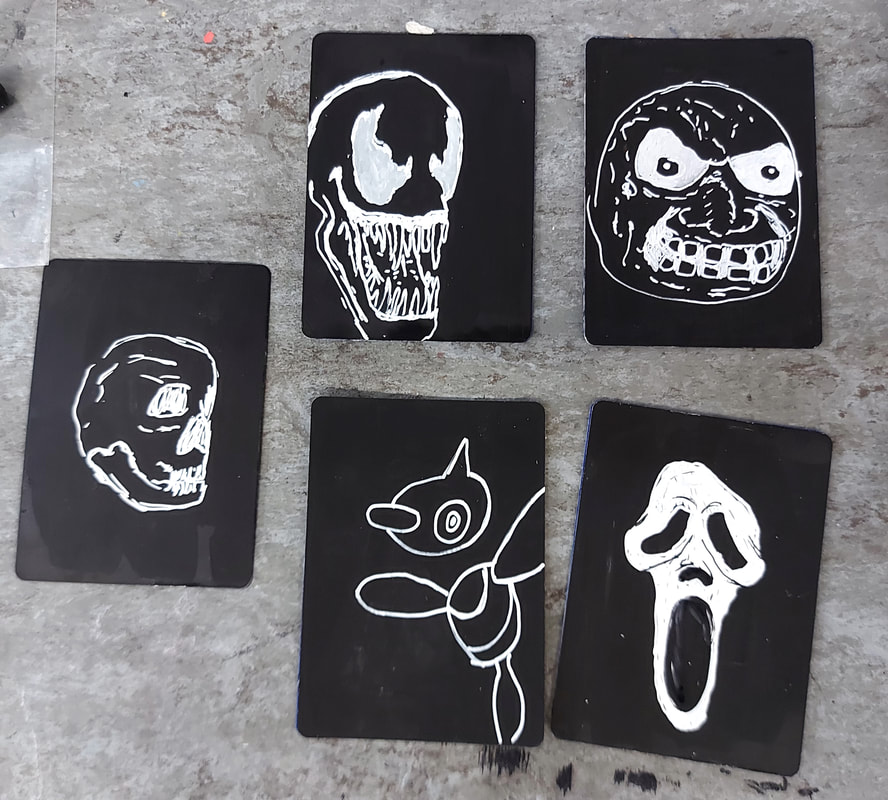 At first i did this for fun and just did Deaths Head and Deaths head 2 and i blacked out some pokemon cards as my canvas to try and draw small when i am used to draw big. After that i took the pile of common cards and glued two and two together after 7 cards got the pokemon logo still showing after many paint. I ended up getting 76 cards from gluing and painting.