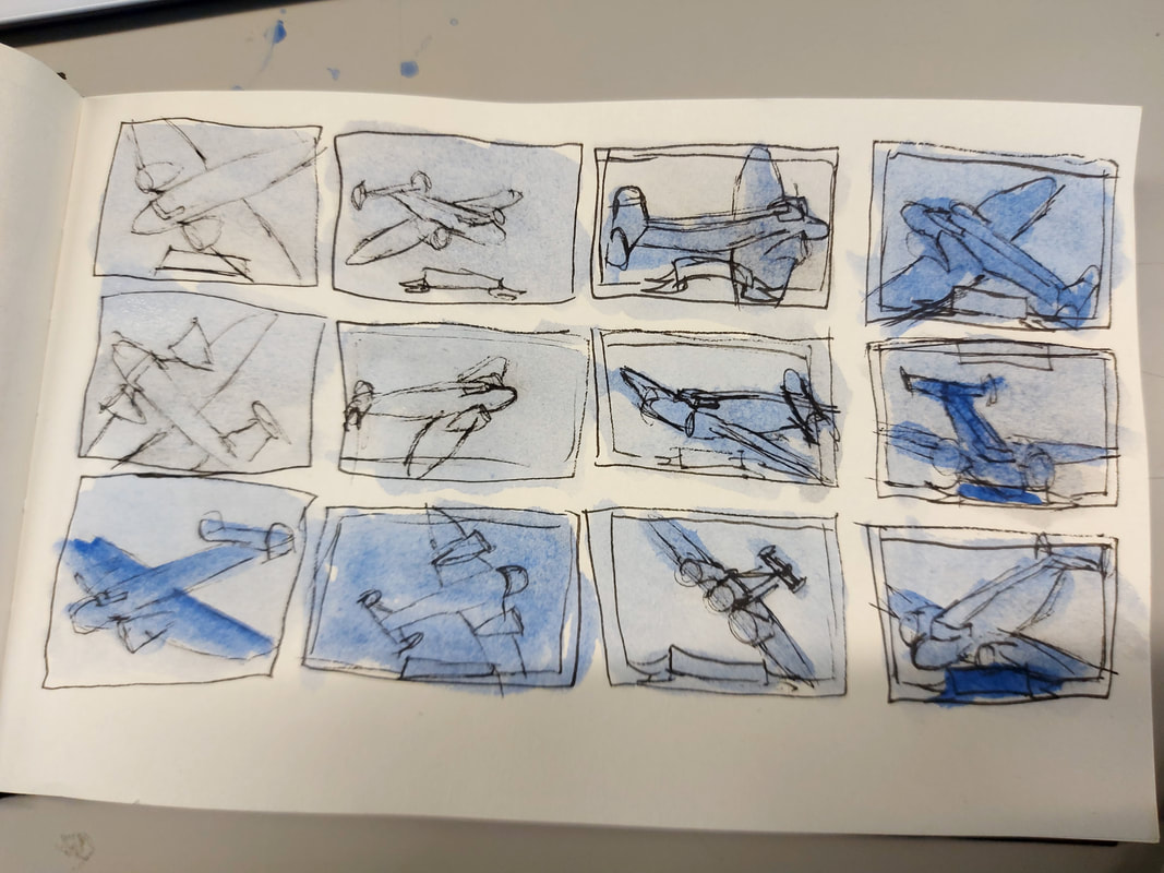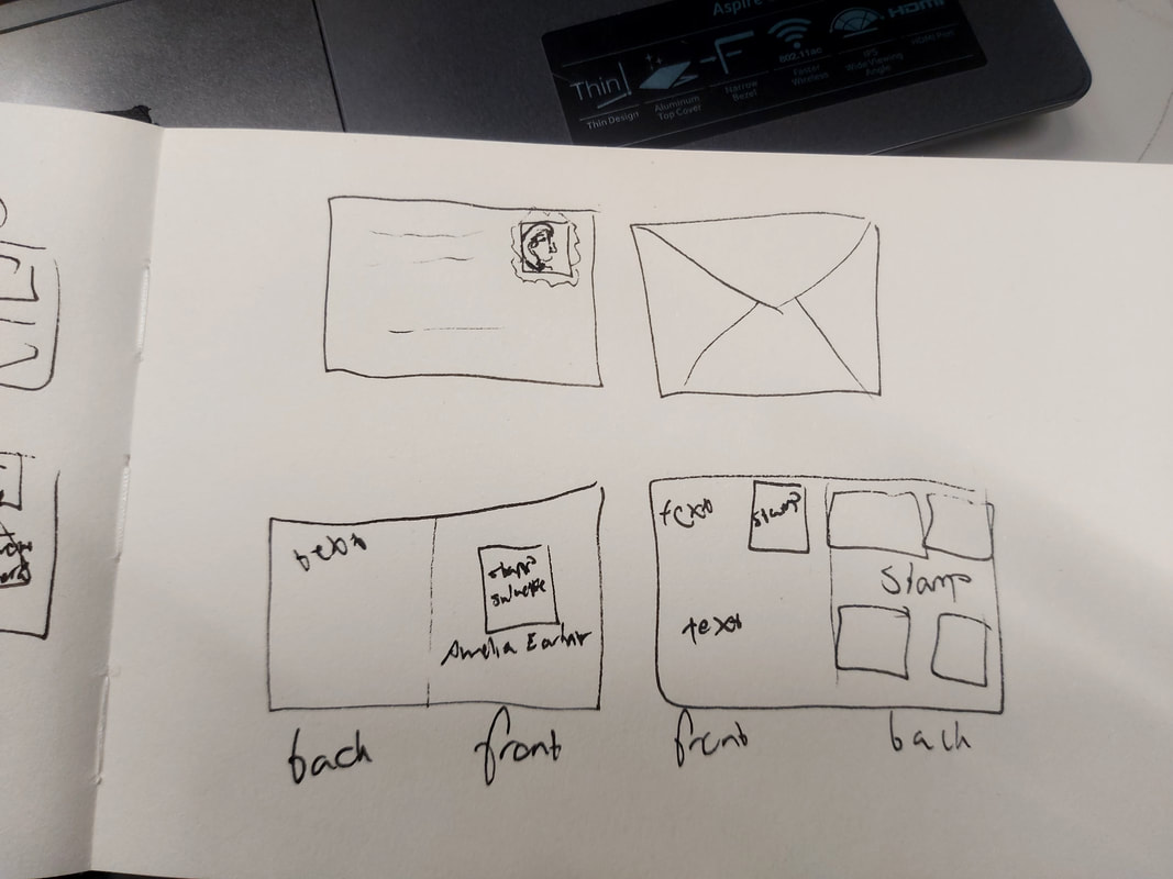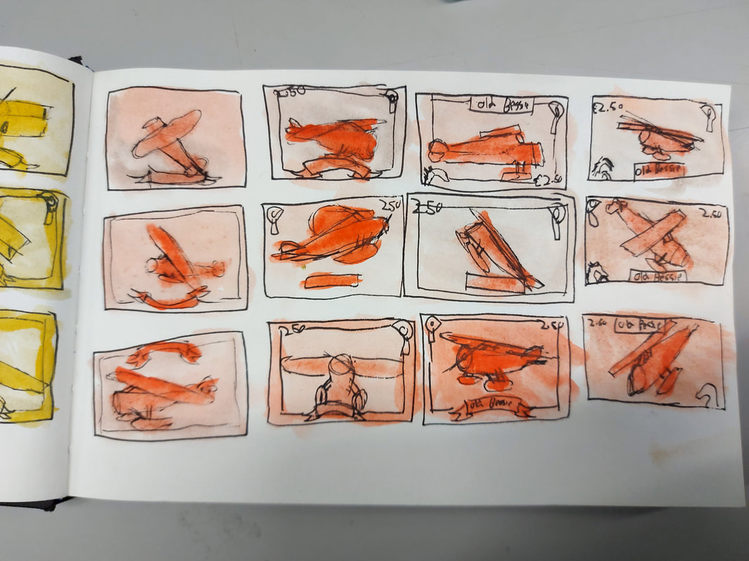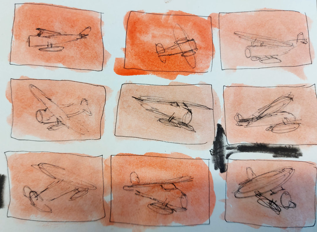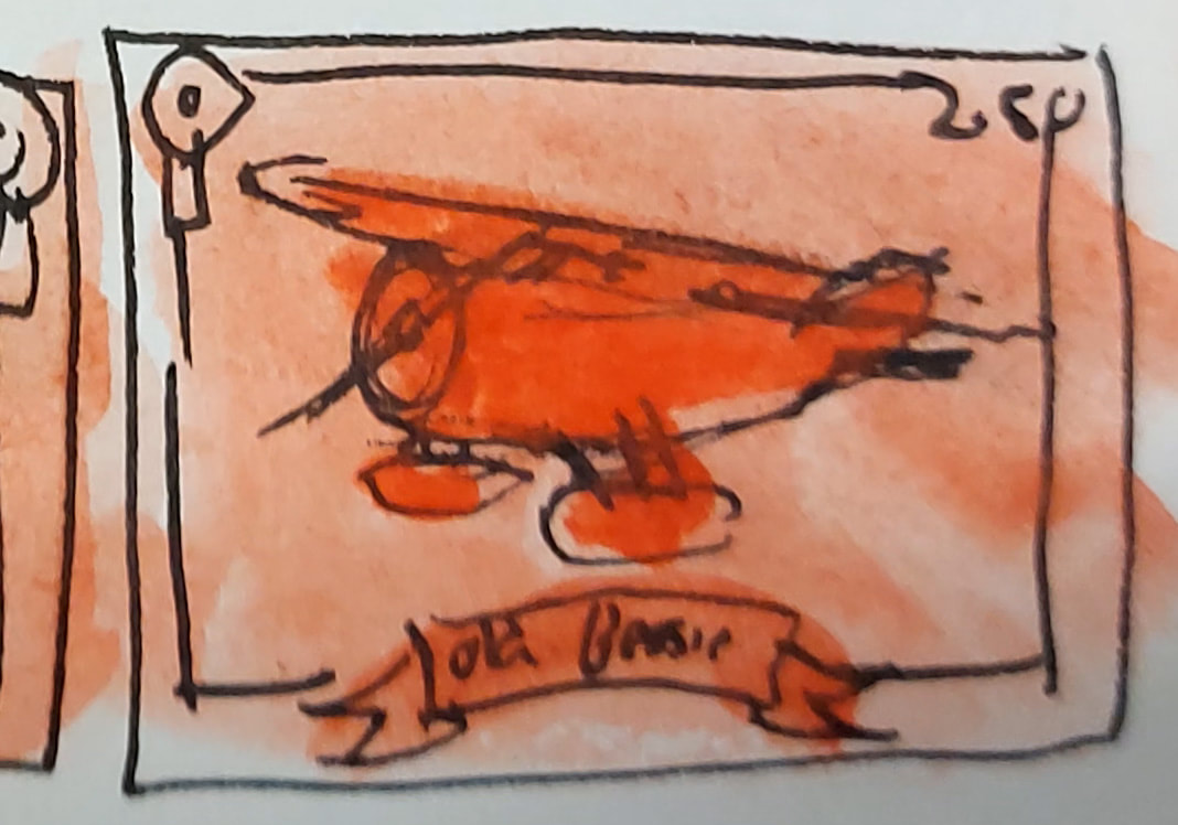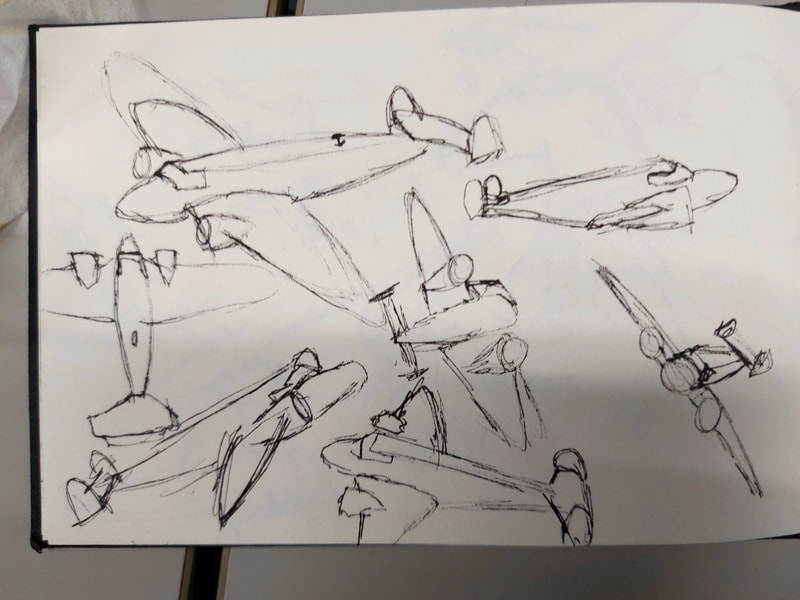 Sketckes of planes (and side piece). The canary birds stay but i gave up on the side drawing just for now. The idea was to have the animal that the planes were named after in the side of the stamps.