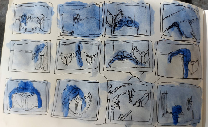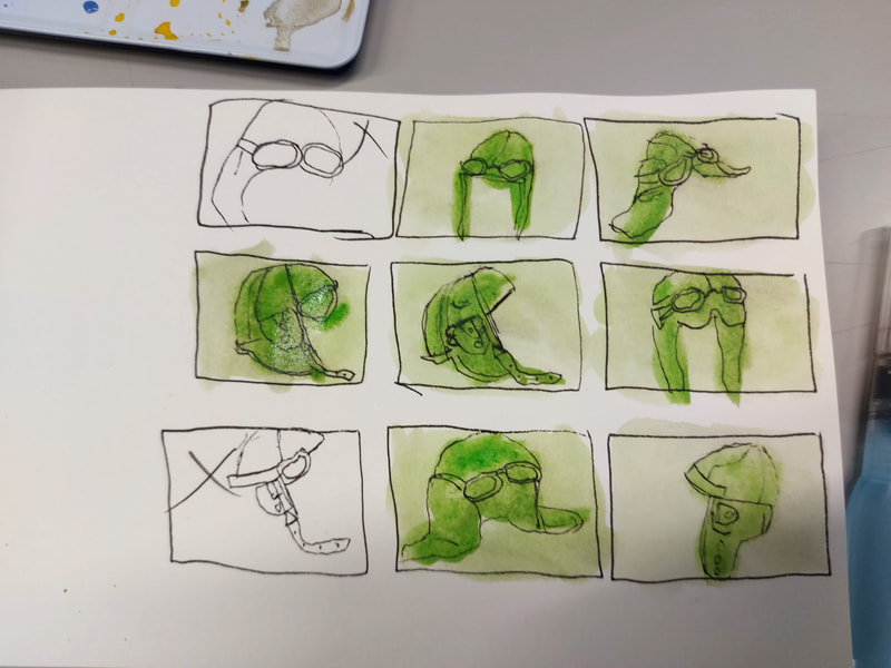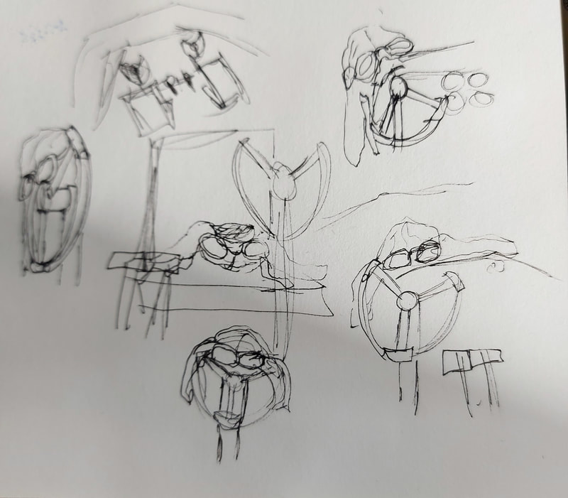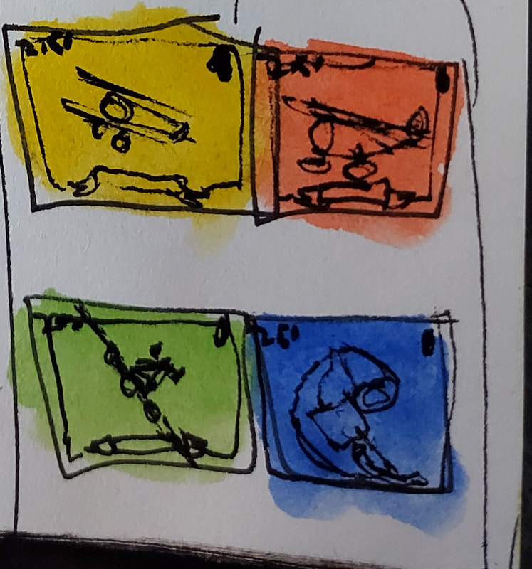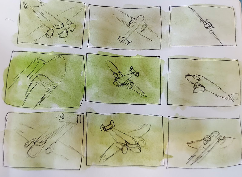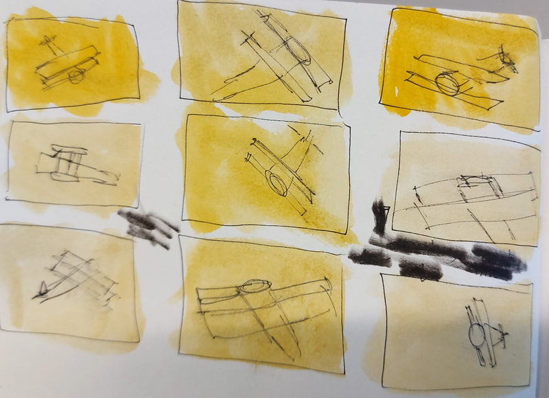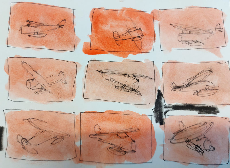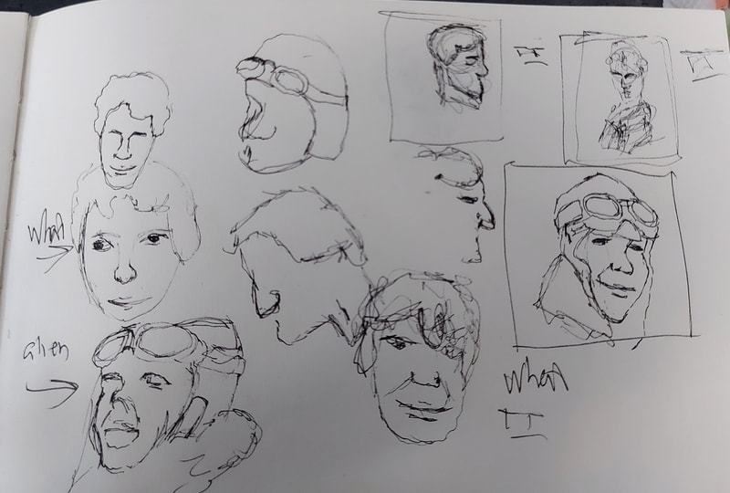 Sketckes of planes (and side piece). The canary birds stay but i gave up on the side drawing just for now. The idea was to have the animal that the planes were named after in the side of the stamps.