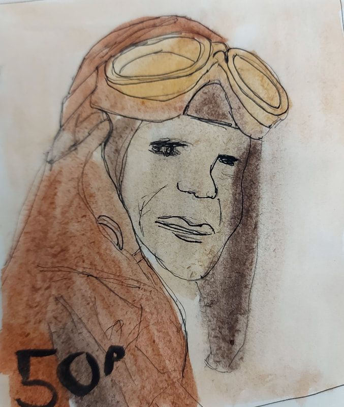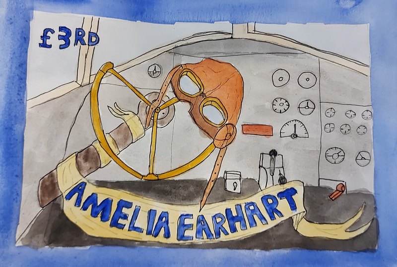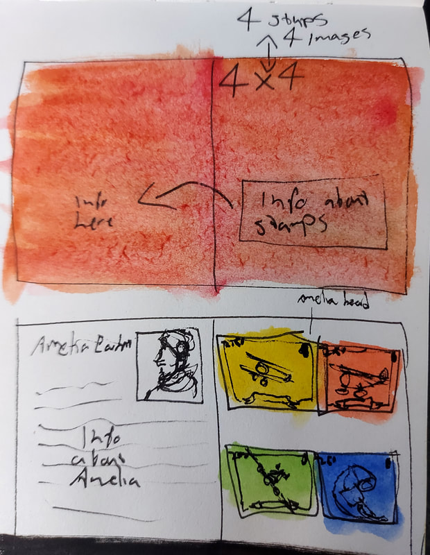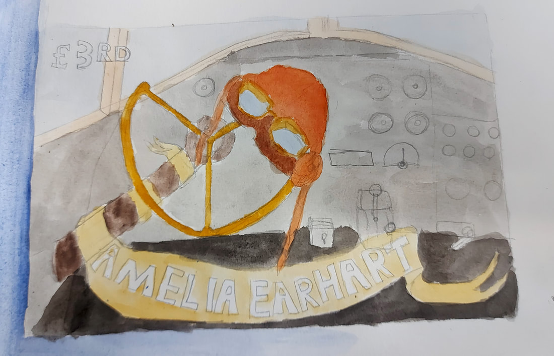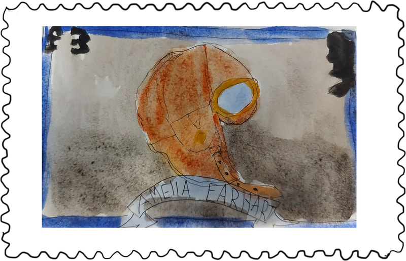 Down here you can see the prossess of the creation of Amelia Earhart and her planes and goal as stamps
