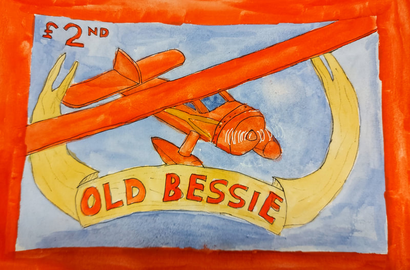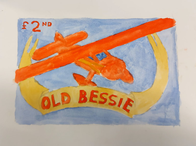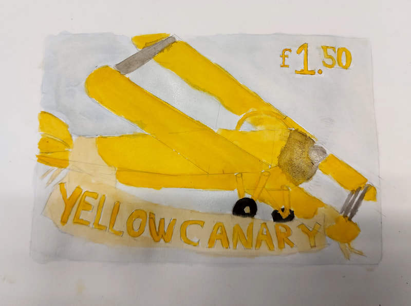 Here are the stamps i like of the canary, old Bessie, flying laboratory and Amelia flying hat. I do not like the colours i picked for flying laboratory and the head piece so i might switch those two so the flying laboratory will be green anf head piece is blue.