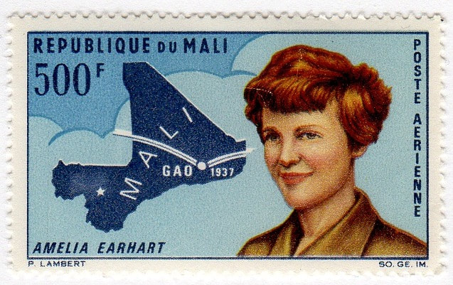 Amelia Earhart favourite colour was brown so her stamp is coloured brown.