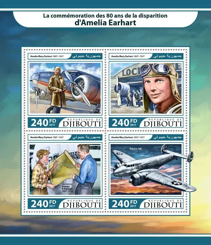 Stamps in work Canary flown altitude at 14.000 feet Old Bessie flown from North Americ and back Flying Laboratory was supposed to fly around the world Amelia Earhart flying hat