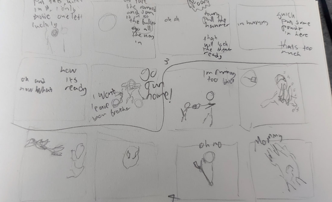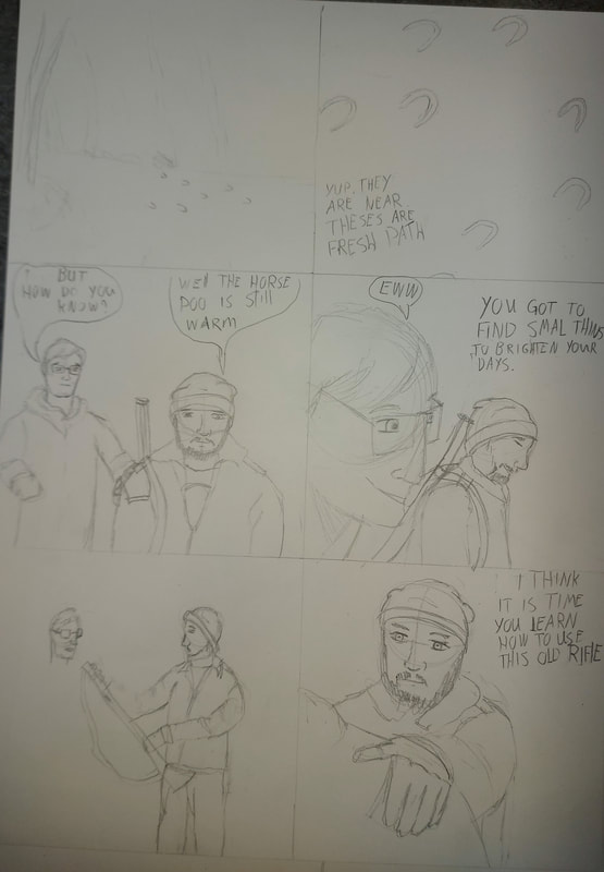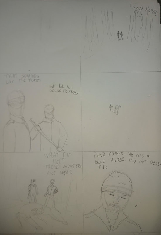 A lot of mistake, rough drawing, body shapes changing lenght and sice a lot, shadowing, lighting and colouring are all over the place, thee gun gets details and then a tube and details and again a tube, monster was just thought on the spot, horse body dissapeared, explaining how the gun works was only 6 panels (one page) and it does not explain it well. Not really happy with this, not just because i drew me and my brother being eaten, it is that the story is bad, the drawings are all over and the pacing is rough. I am more paper and pen guy so doing this digital after not drawing digital in a long dime was hard but fun learning again. Will play around in the future but problem i, this is free app that makes it look like a mouse drawing. Cheers