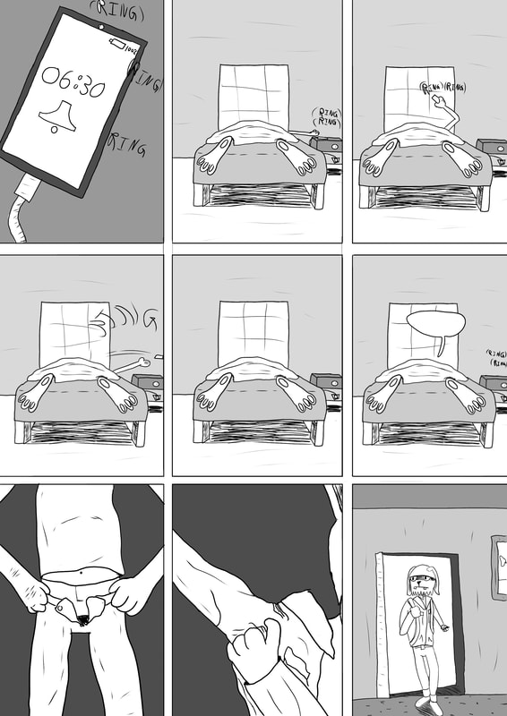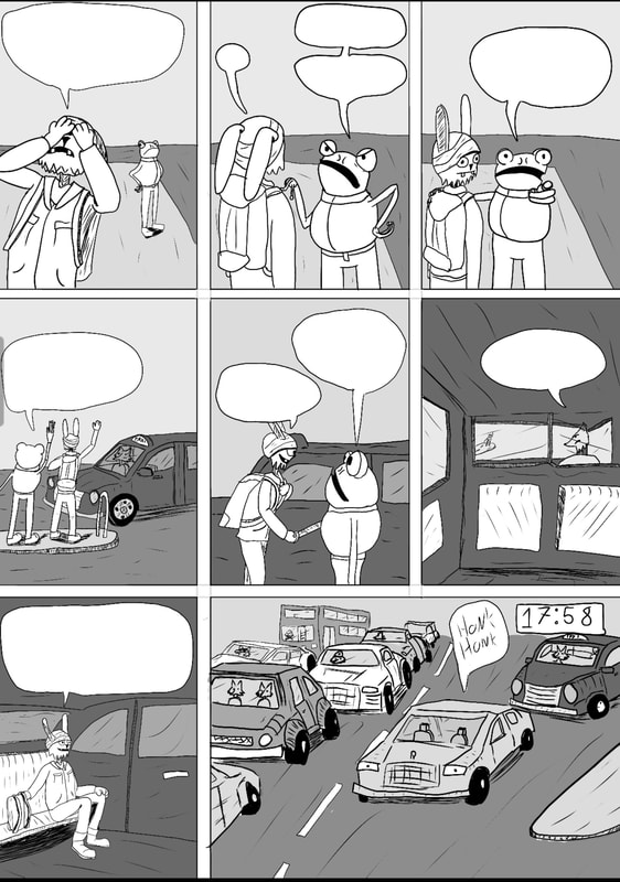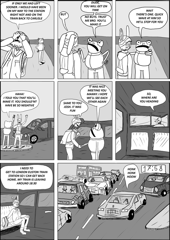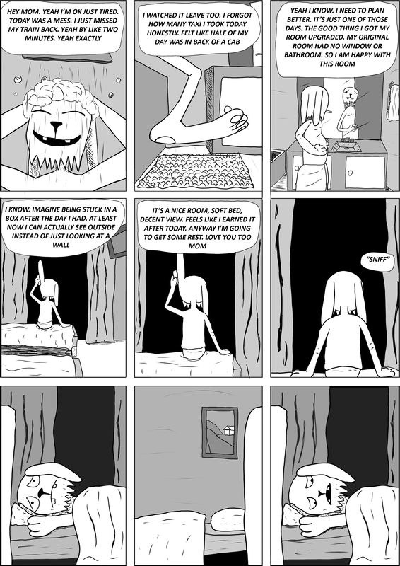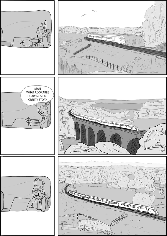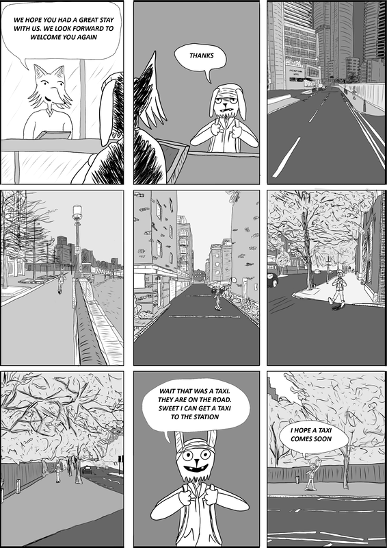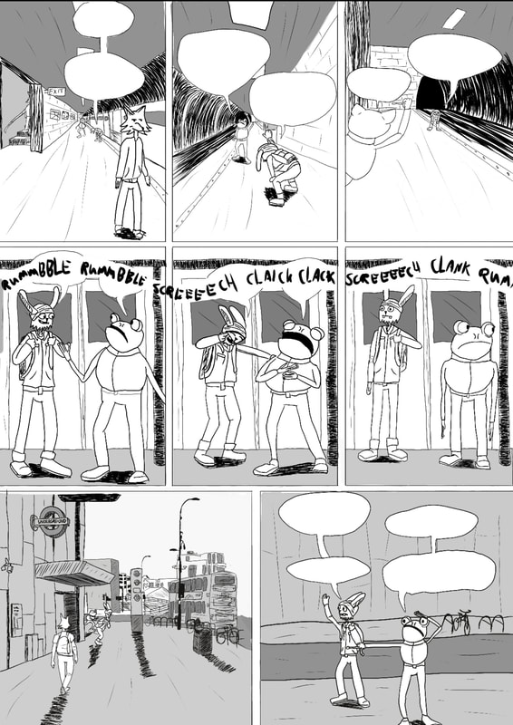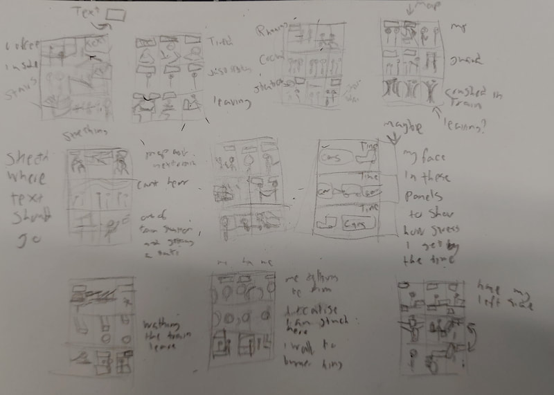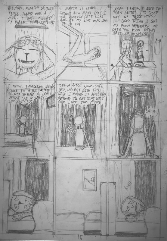 The pasing of the comic is similar to how the movie Dýrið (Lamb). What i mean by that is similar to Lamb, there is going to be long silent, three panels with just the same panel but with some minor changes to show how i felt (like in the underground train when it was crowded) and when i am going to the train station and when i get back home.