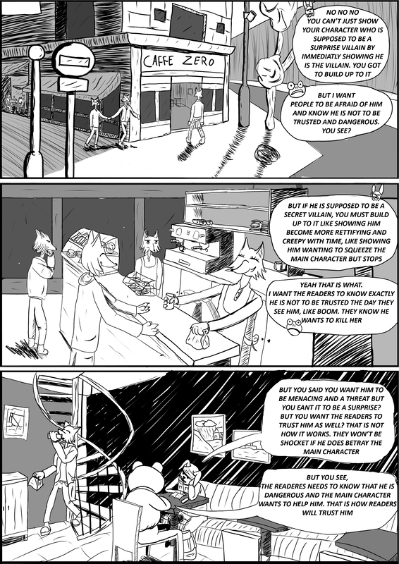 The panel and how it is made is when a character is talking, its like a movie in a comic book form. Where we see the back of the person you character is talking to abd when the other is talking we see them and the other is jsut their back.