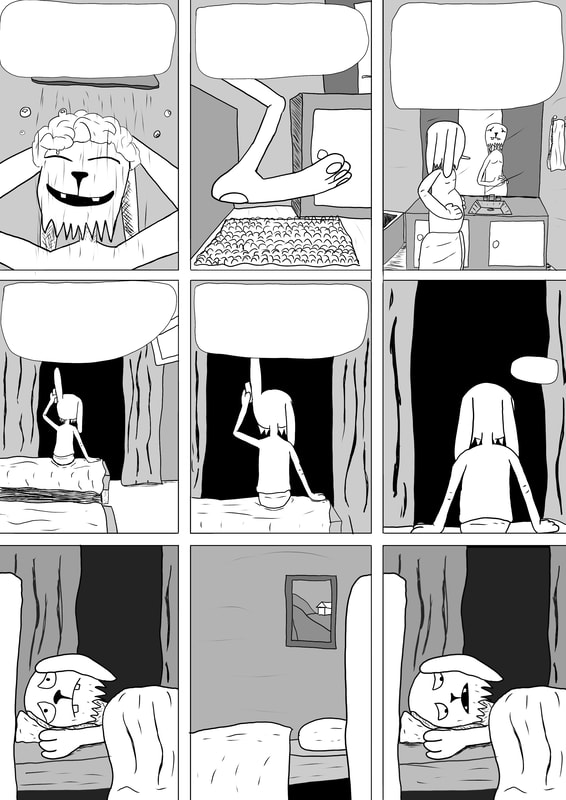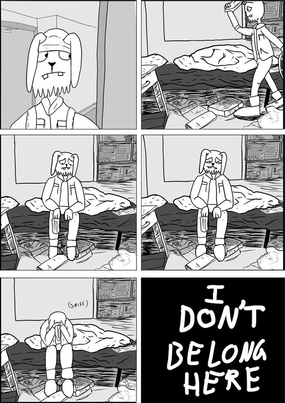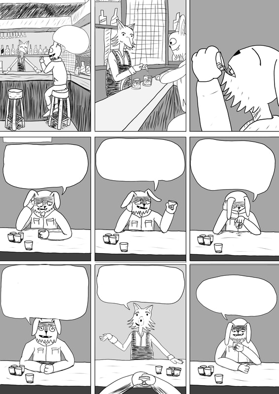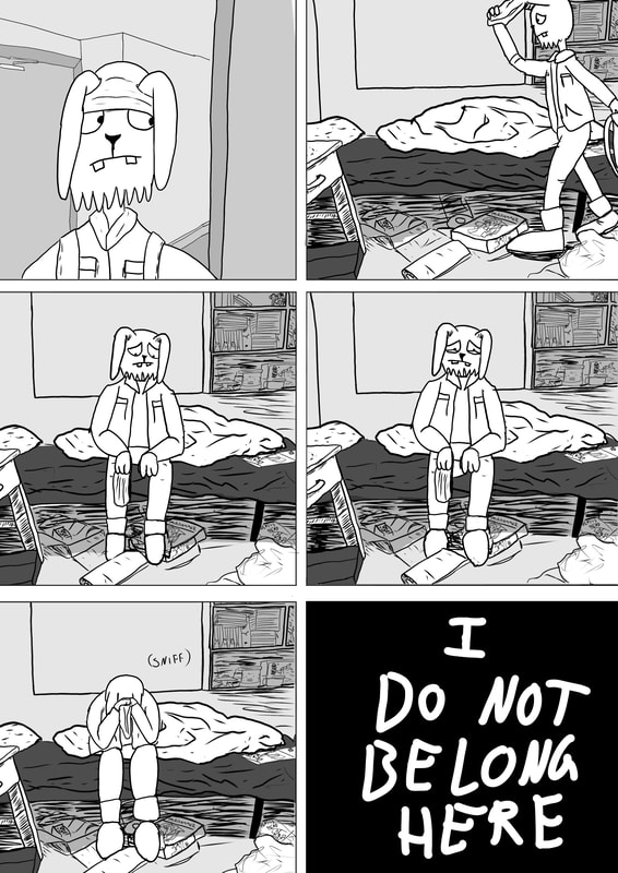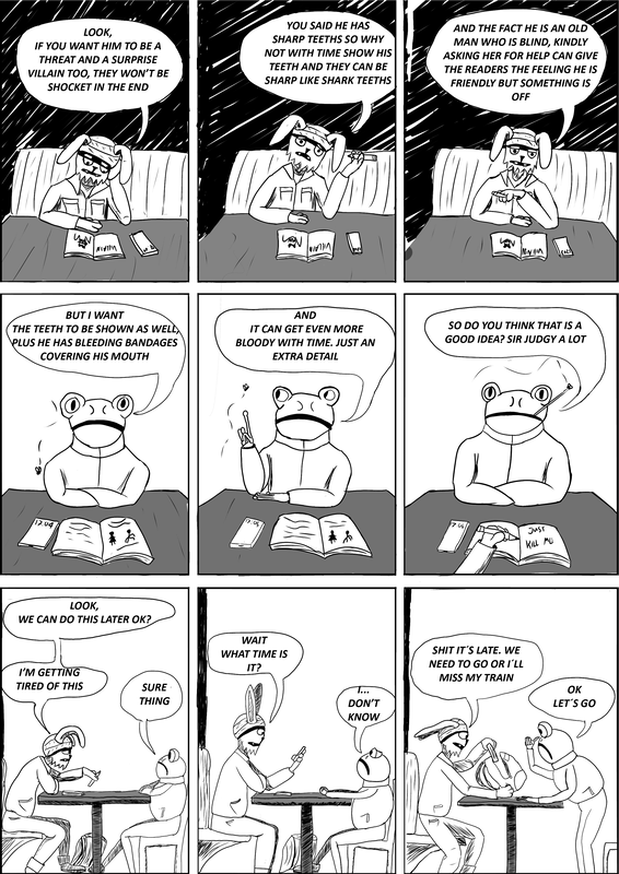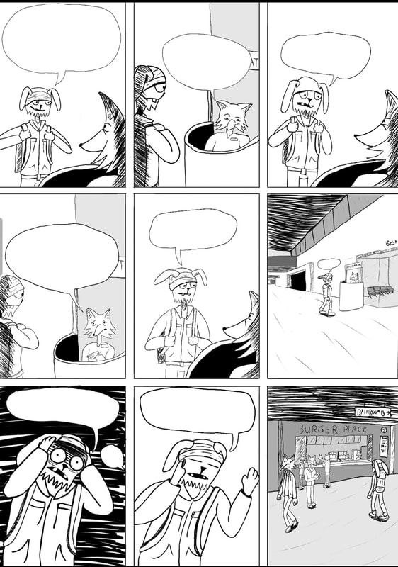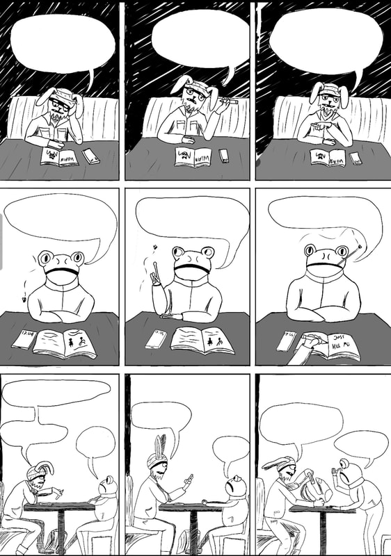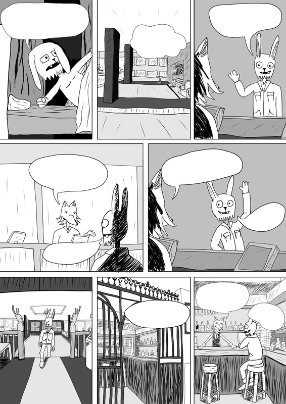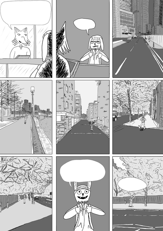 Matt Groening the Simpsons style is also little built into the comic. I want to try and make the character(s) memorable when you just see their silhouette and know who they are. Again having him as a rabbit is not because of Life in hell Matt created. Weird Work after writter Jordan Thomas and artist Shaky Kane is really colourful comic book. I got to meet Jordan and have two books with his autograph. Lucky for me it is the comic that showed me if the story or the plot is good and the art style makes it work, for example the comic Weird Work, the characters are colourful and the world is just random. But its still fun to look at. I cannot wait for the sequel. Im starting to read Man from maybe, the new book by them as well and the art style is similar but silly Used to own a lionhead mix and he looked like he had a beard so that is why i am making me into a rabbit. Also the ears can give expressions more easily |